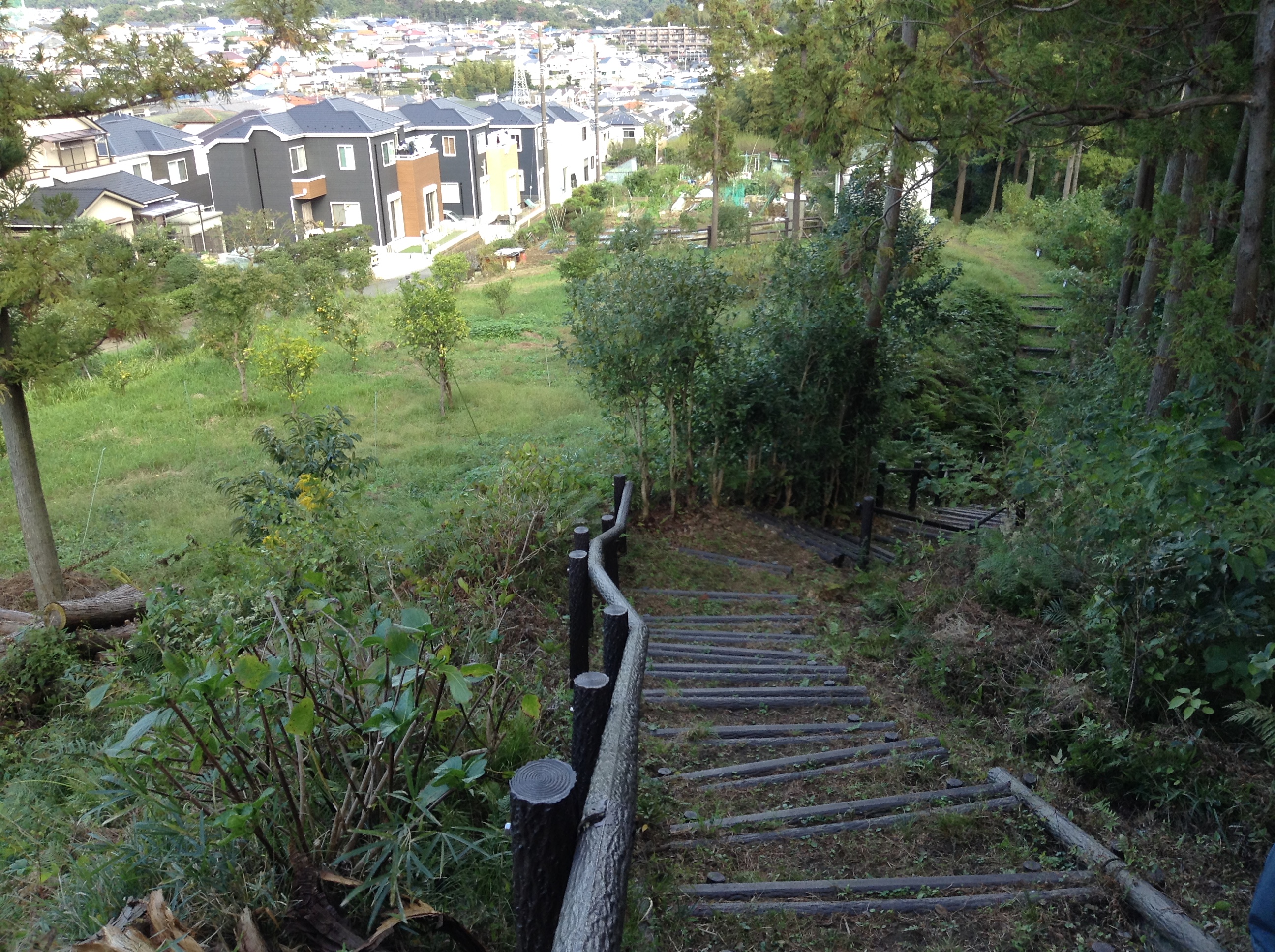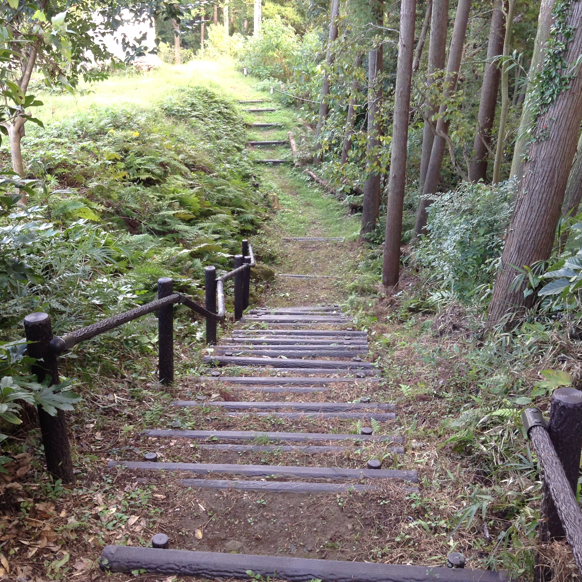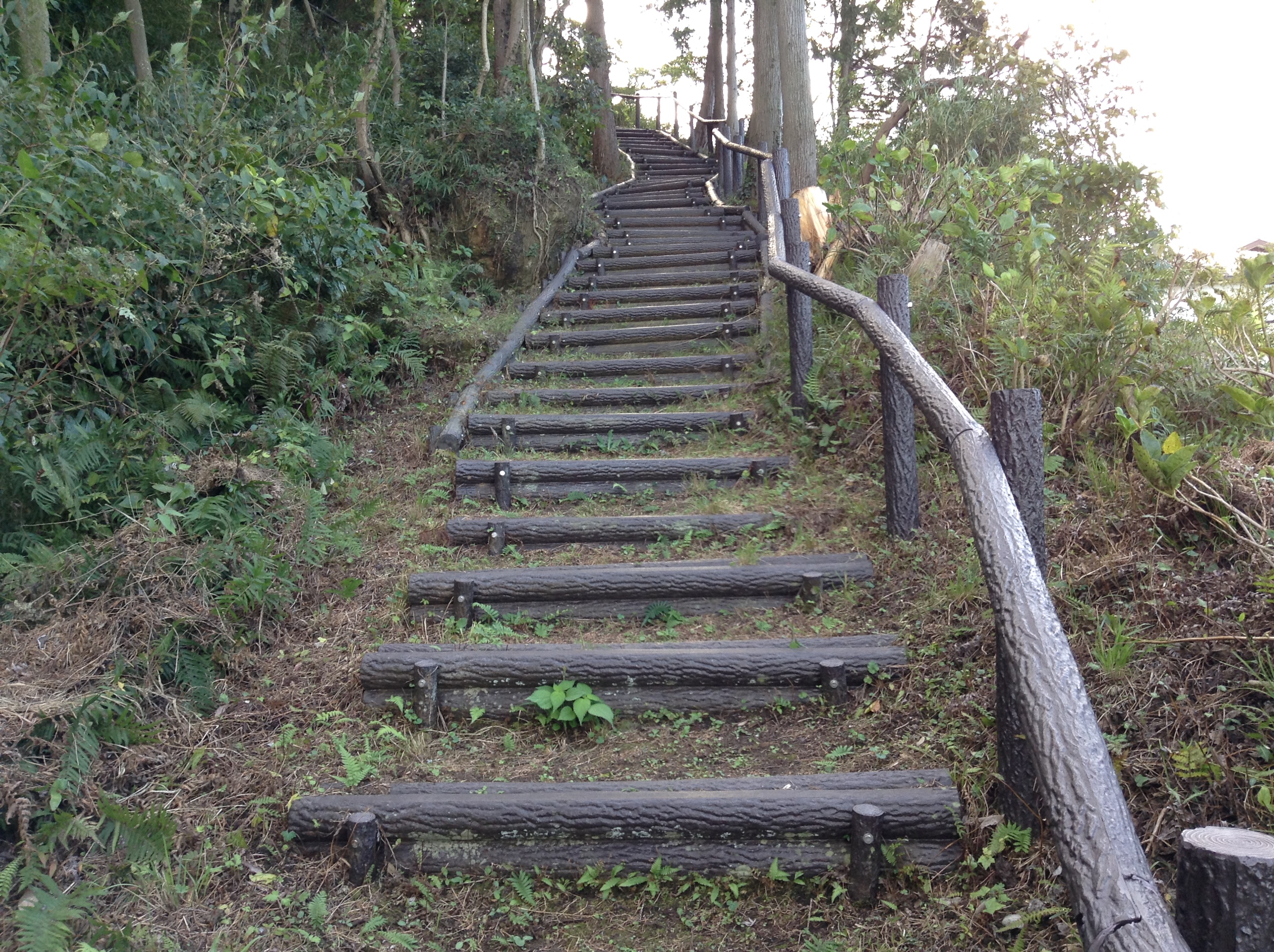 おいこし坂は「追越広場」へと続く道です、この森では一番きつい階段です。