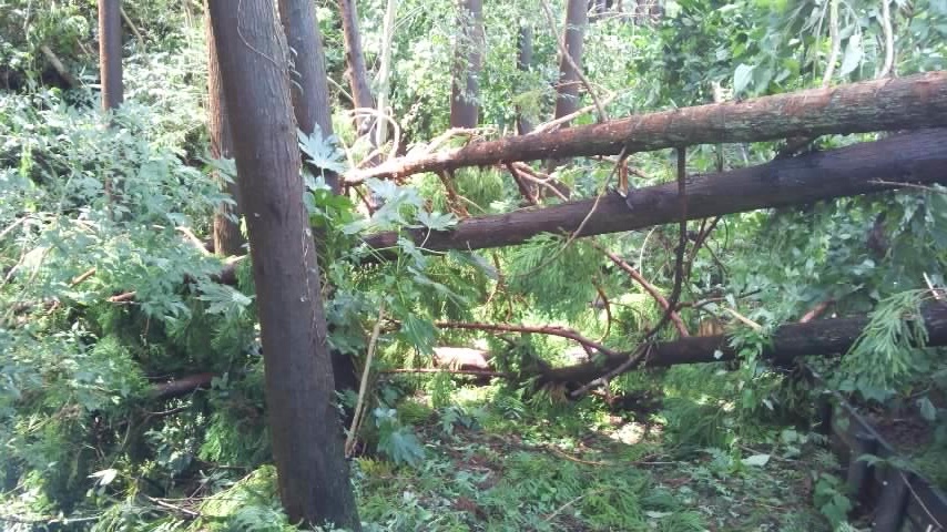 谷間の倒木、整理撤去は、横浜市と相談し作業安全を考えて、対処しております。
