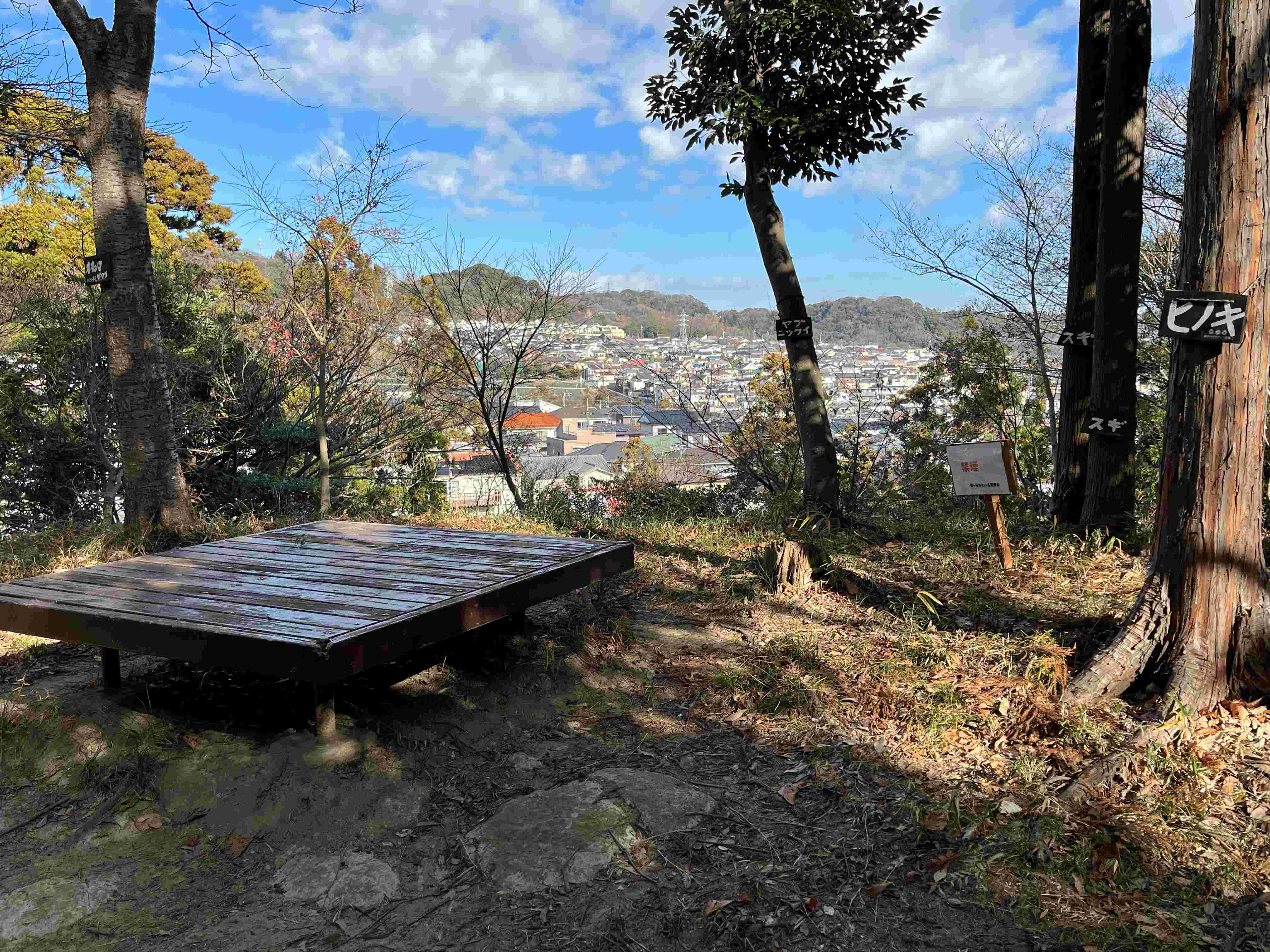 「追越」の名は、昔当地の地名で「追越広場」と命名しています。この広場は、市民の森の一番高い「こじんまり」した広場です。展望は、遠くに金沢自然公園、手前の住宅地は、山の手、関ヶ谷、夏山が一望できます。追越広場は、「おいこし坂」「こもれびの道」「すぎこだちの道」散策路の分岐点です。