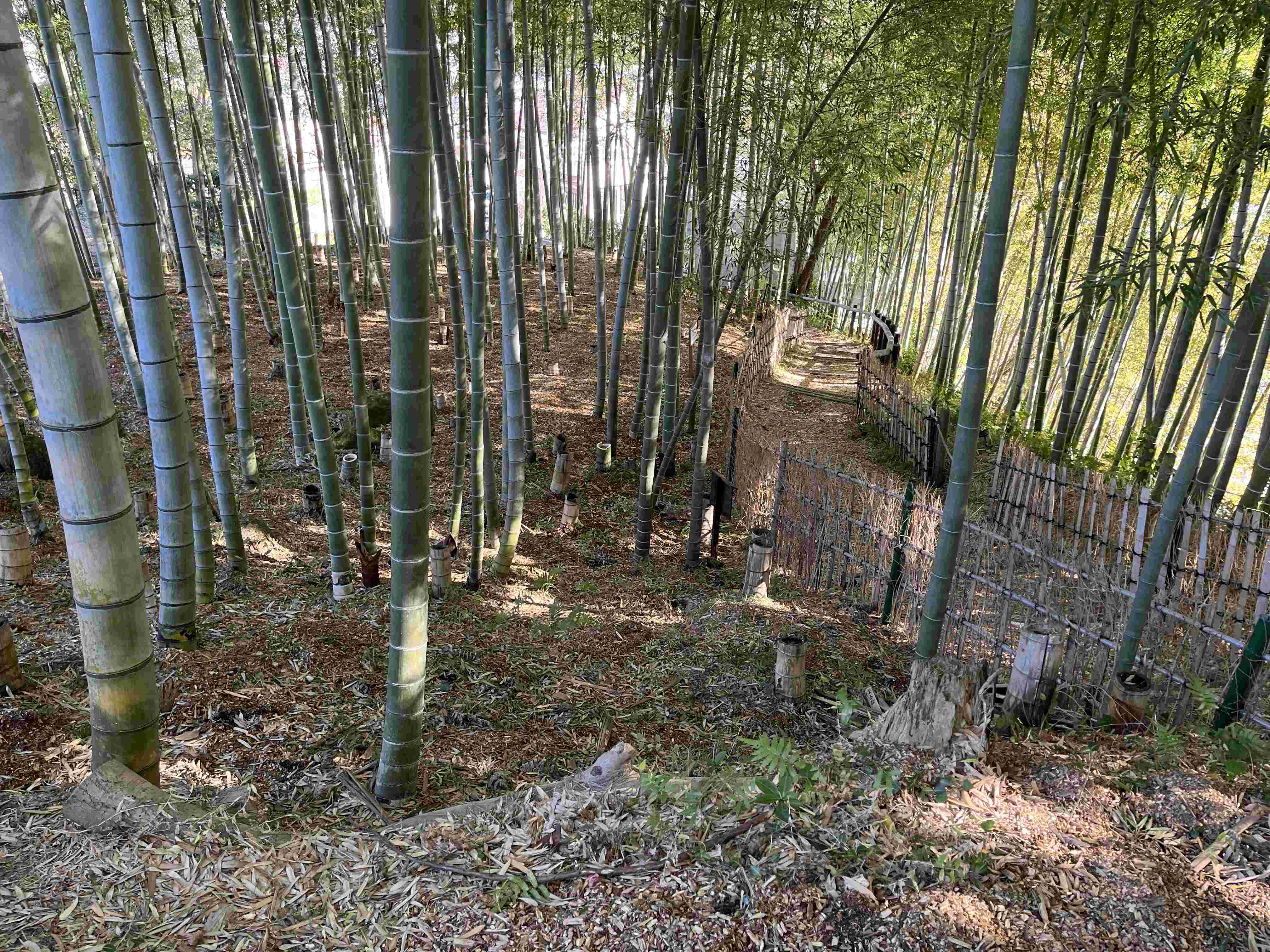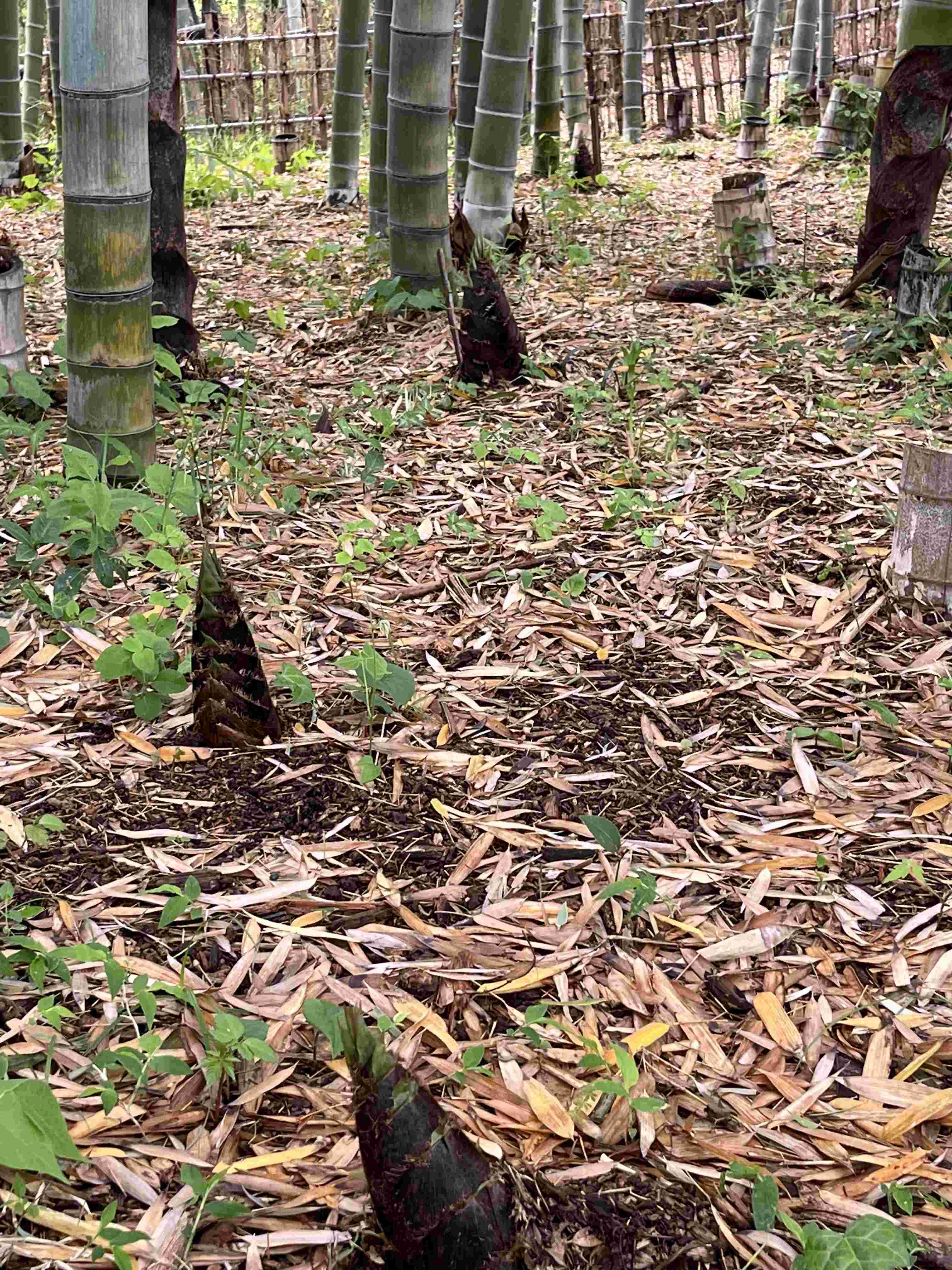 市民の森の案内へ トップページに戻る 竹林管理は、美しい竹林を保つため西日対策で金木犀、けやきを植林しています。「たけのこ」の生える時期は竹林保全のため、採る竹の子と残す竹の子を剪定し、密集しないよう間引きを実施します。また、竹は年度管理し5年以上経った竹は秋口に伐採整理し管理しています。間伐材は、竹垣補修材料、竹箒作成、炭焼窯で竹炭、竹酢液の作成等竹屑をなくし再利用しています。 春に顔を出した竹の子 Next 梅林へ 市民の森の案内へ トップページに戻る