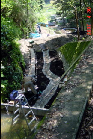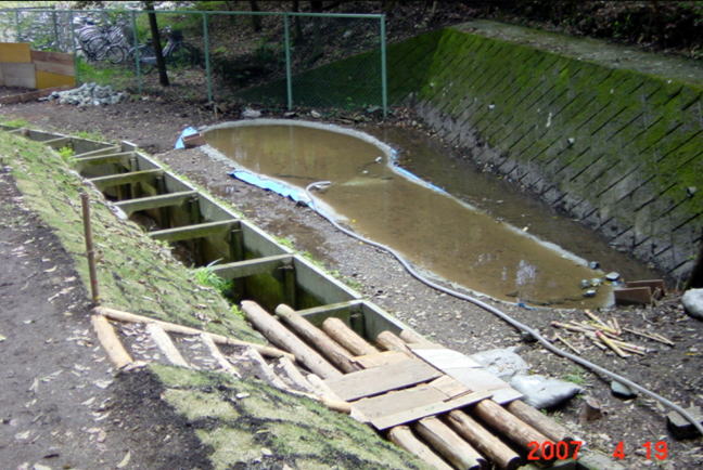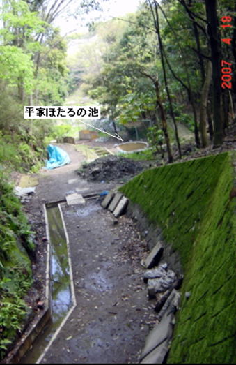 「平家ほたるの池」より見た造成中の“せせらぎ