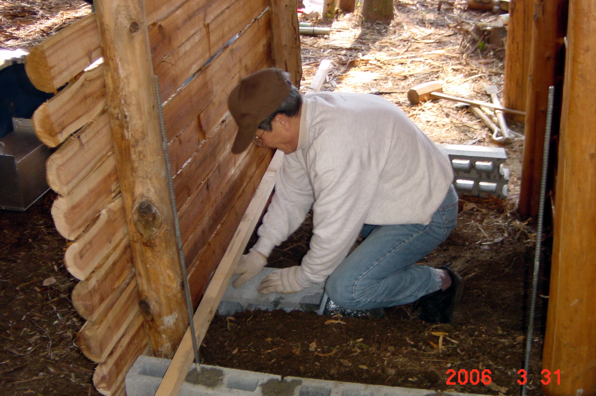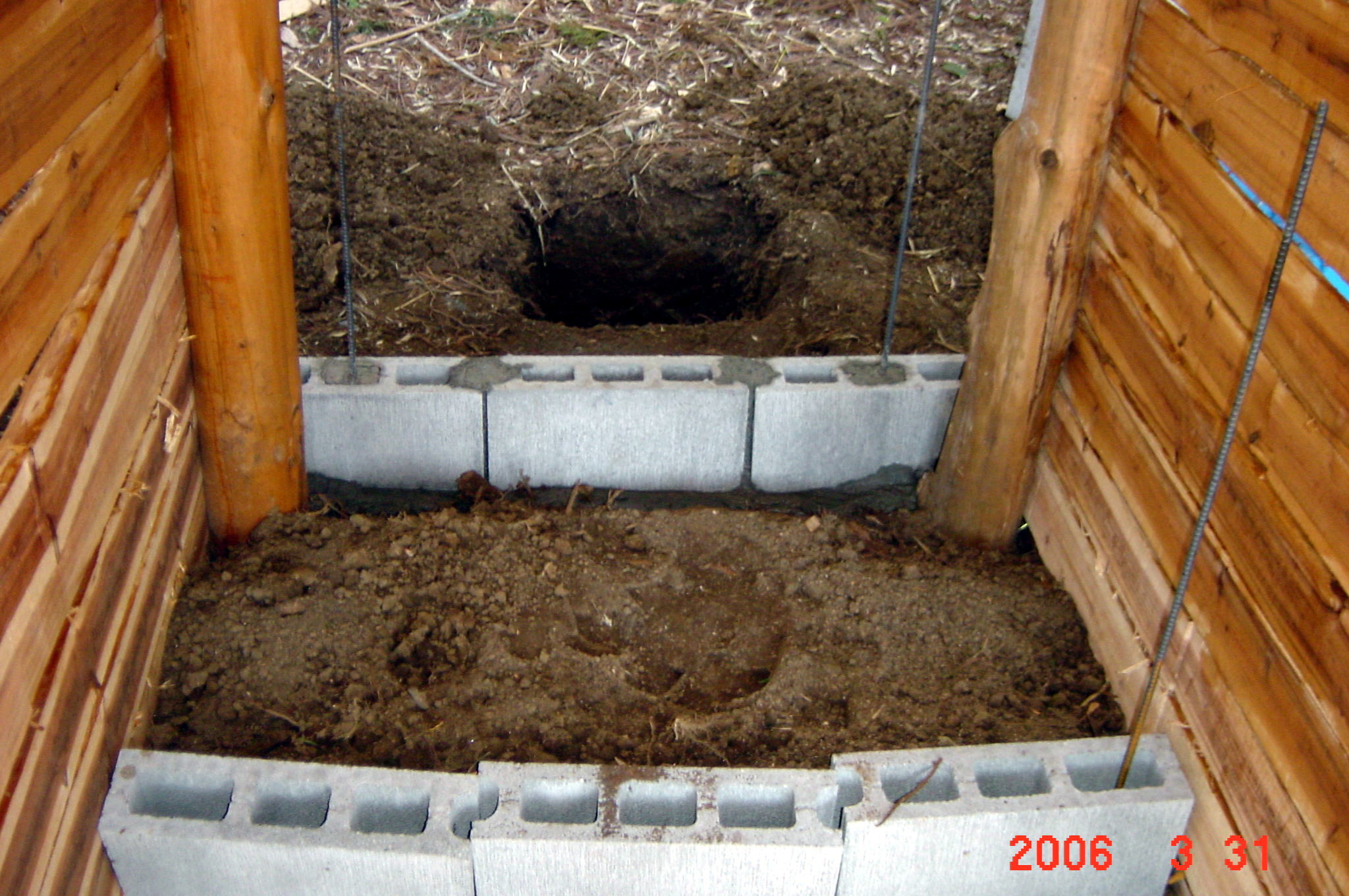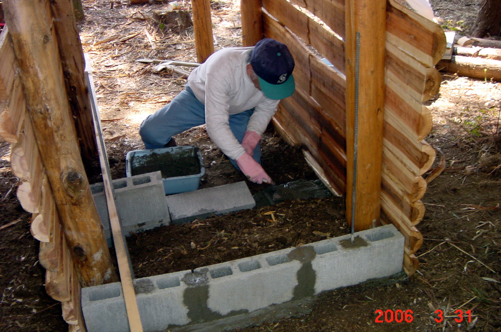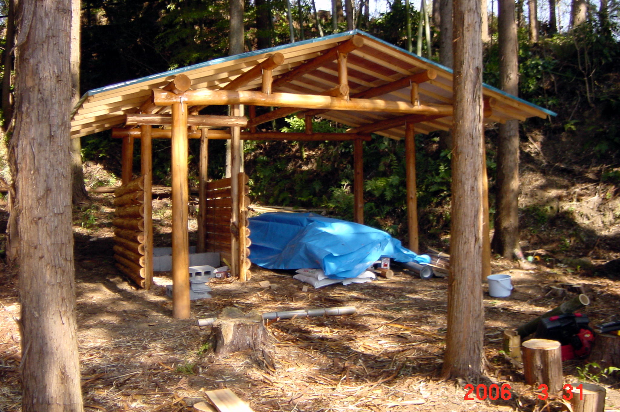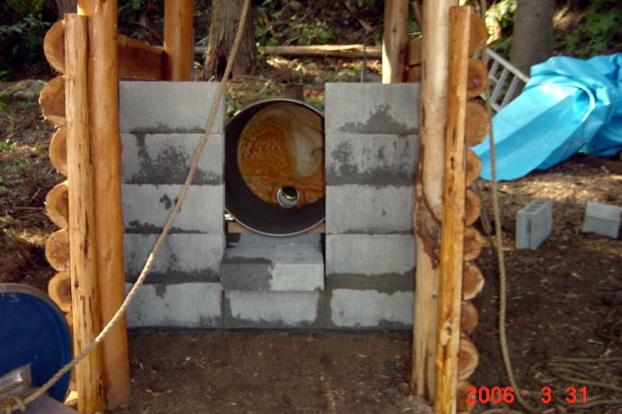2006年3月30日、31日の2日間の工程でした。第1日目は炭焼小屋の左側に炭焼窯の両脇の壁を作りました。