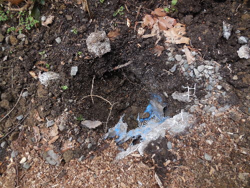 入口の門柱の穴60cmを掘る:20cm以下から出現する砂岩はなく60cmに達することができた