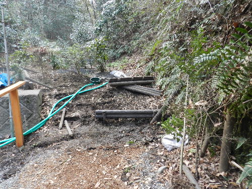 2017年3月10日 階段上の山側の砂岩を崩し道を拡張。