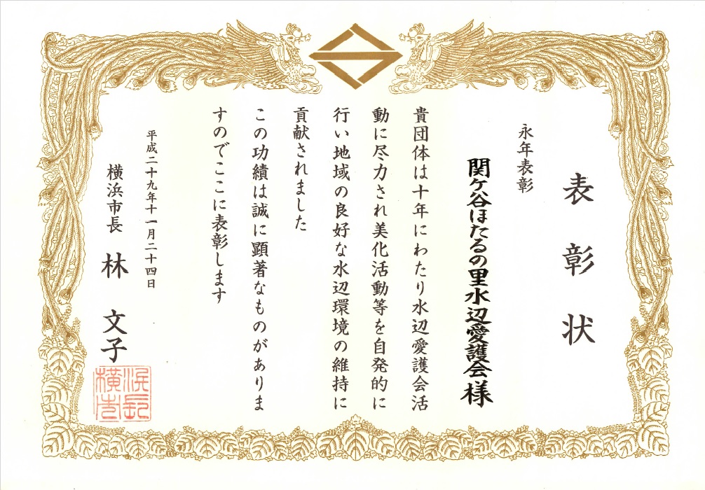 水辺愛護会活動表彰状