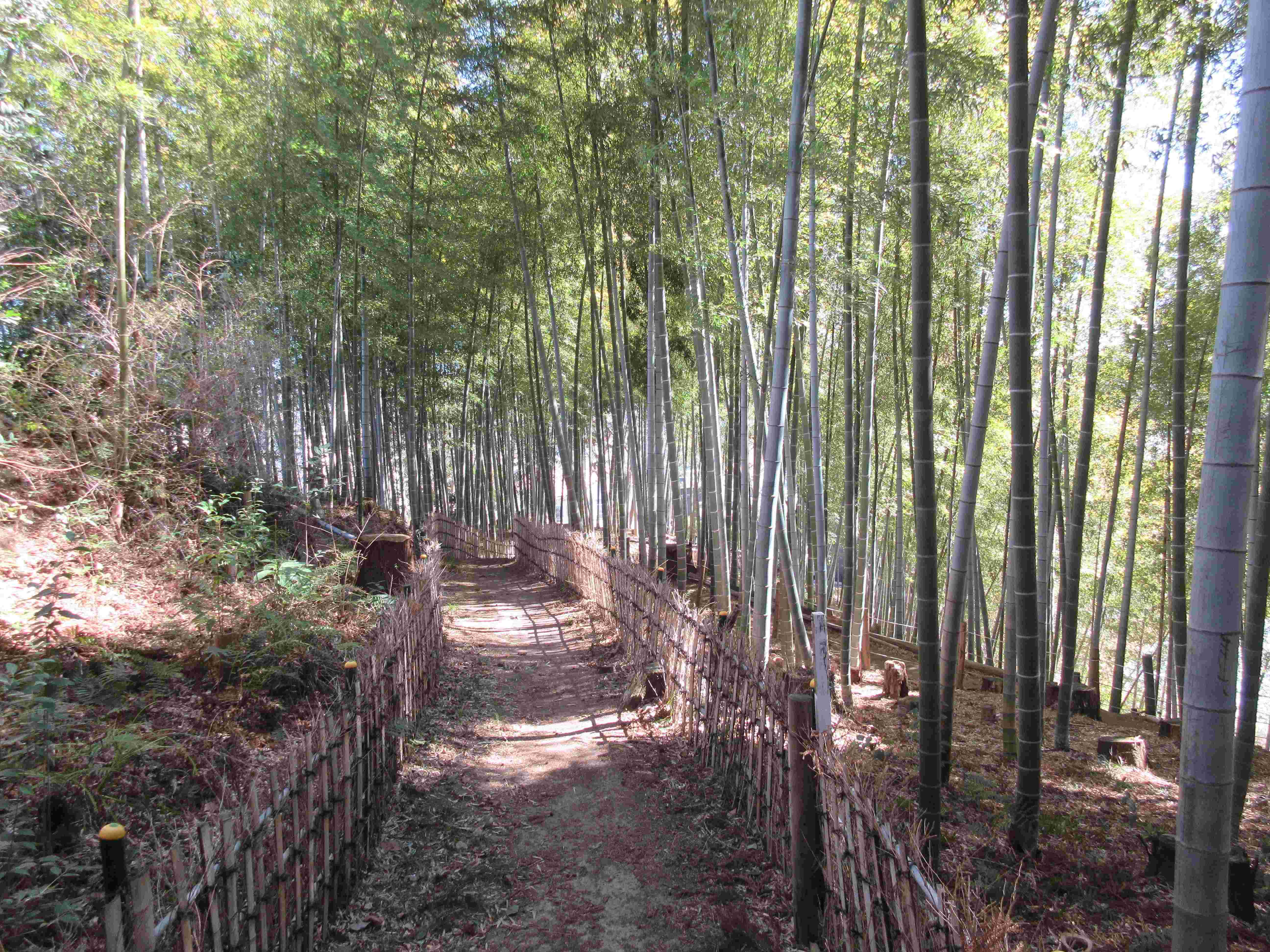 市民の森の案内へ トップページに戻る 竹林の中に開かれた1本の道が「たけのこの道」で両脇に竹垣のある散策路です。そよ風による笹の音を聞きながら風情を楽しむことができます。【竹垣は、竹林保全の為に剪定伐採した竹を利用し作成】 Next さえずりの道へ 市民の森の案内へ トップページに戻る
