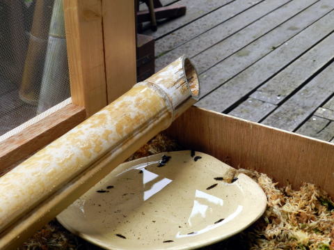 上陸のため幼虫はこの皿の上を半日くらいぐるぐる回りようやく決心して上陸する。
