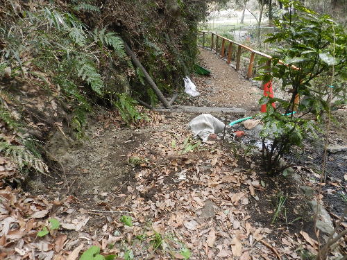2017年3月10日 階段上の山側の砂岩を崩し道を拡張。